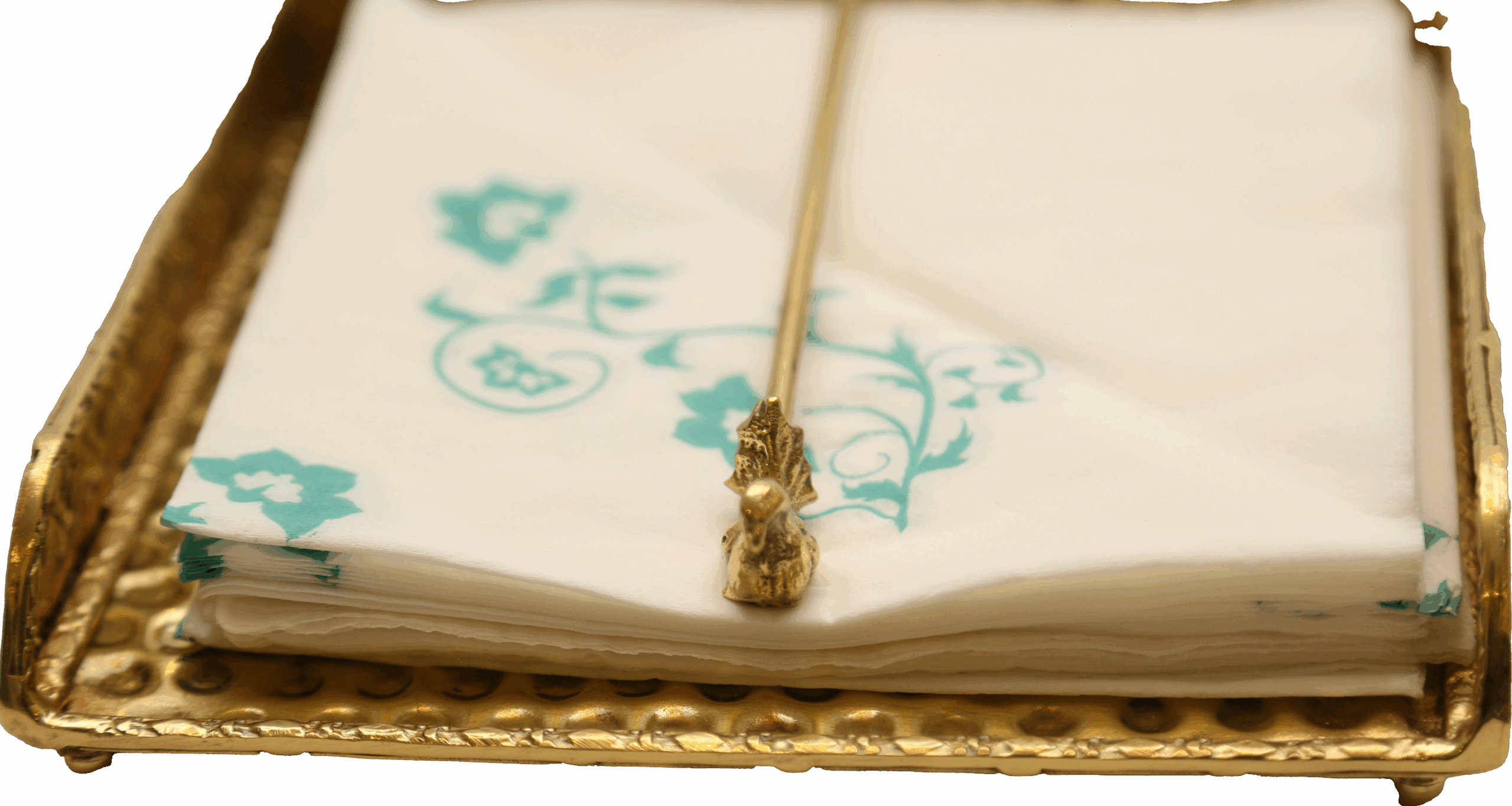 Crafted with pure brass and adorned with beaten technique it’s a must have accessory to complete the look. It can easily accommodate dinner napkins and a bird is added at the end of rod to add weight.